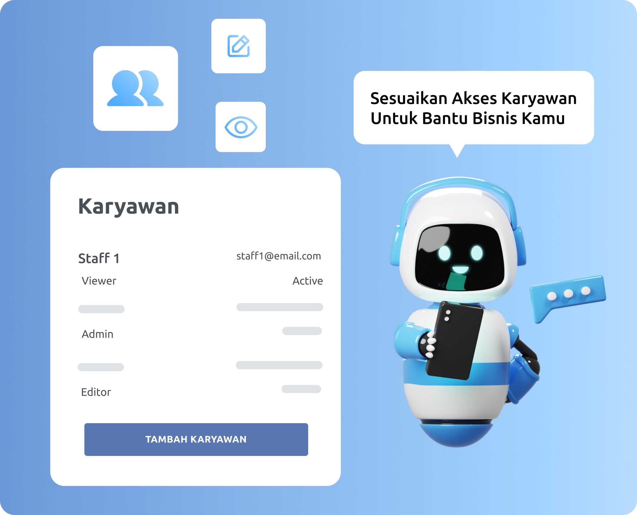 Berikan akses terbatas berdasarkan peran dan tanggung jawab masing-masing karyawan, dan pantau aktivitas mereka secara real-time